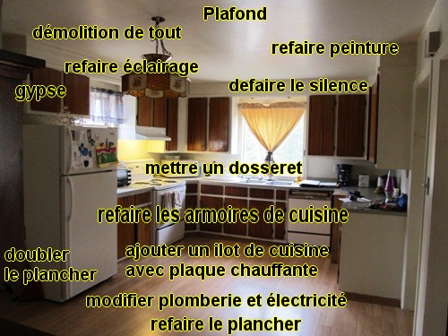 D'autres se diront la cuisine n'est pas pratique comme elle est le poêle devrait être de ce coté donc changeons la hotte, plaçons les électro-ménager à la bonne place, le lavabo devrait être là donc nouvelle plomberie...l'éclairage n'es pas adéqua profitons en pour refaire le filage...
